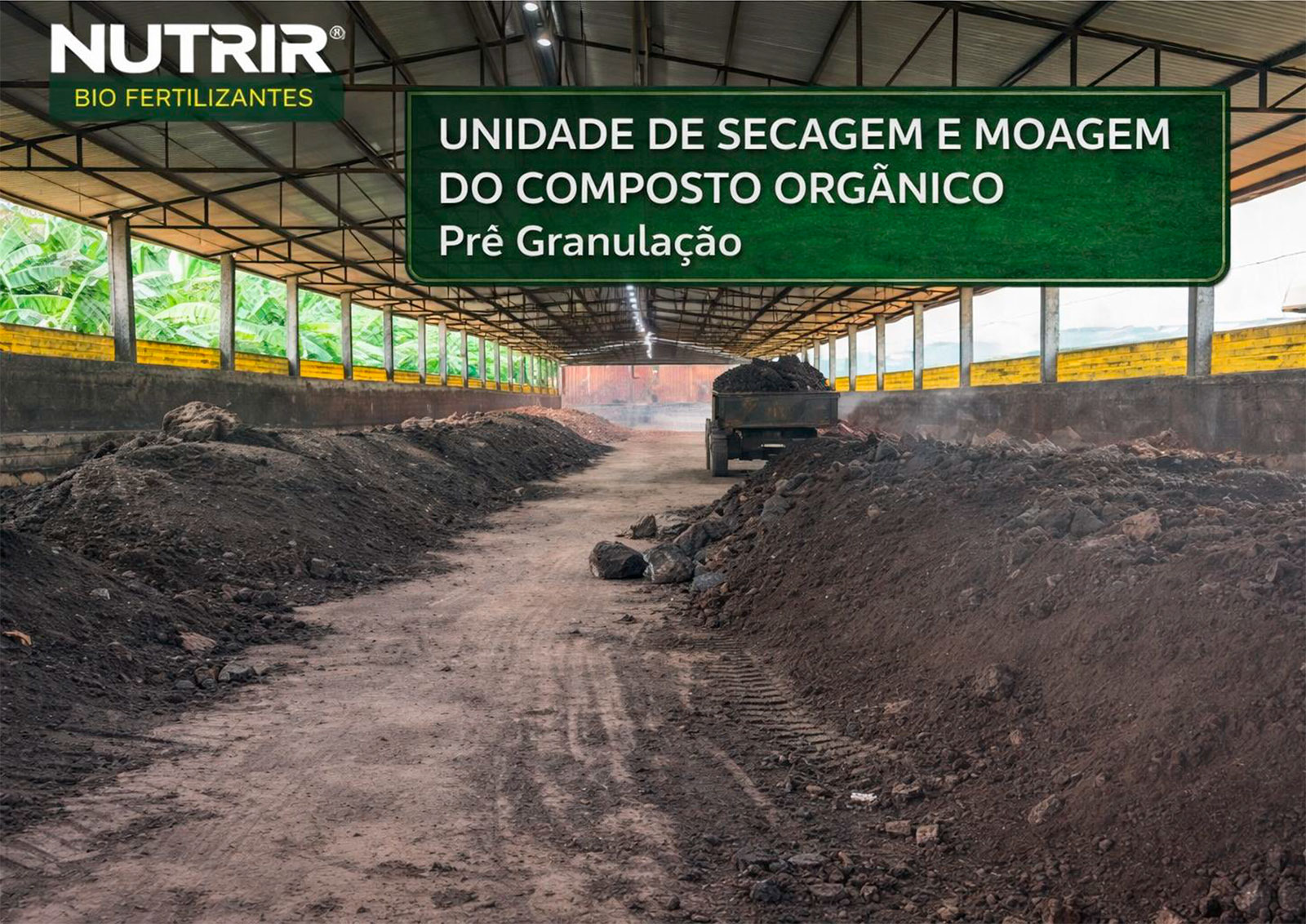 Nosso processo de compostagem é estruturado em etapas sequenciais: recolhimento dos resíduos orgânicos, armazenamento com controle de umidade e temperatura, secagem para estabilização do material, revolvimento mecânico para otimização da atividade microbiológica e moagem final visando à uniformização do produto.